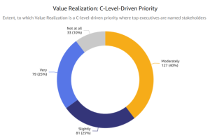 One of our surprising findings: Over one-third of respondents said that value realization was either not a C-level priority (10%) or it was only a slight priority (25%).